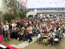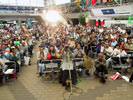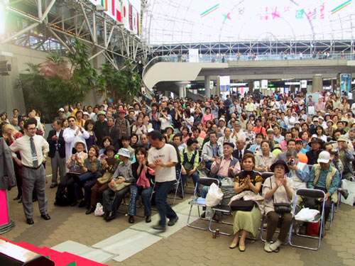 Colazione. Questa volta per il rotto della cuffia. Visita ad un enorme centro commerciale con sala concerti inclusa poco distante dalla fiera (bisogna calcolare che per certi versi siamo in estrema periferia) ed appuntamento con i tajarin dello stand piemontese. Oggi sembra esserci più gente. Molti più i ragazzi e i vecchietti assolutamente più scatenati. Tranne: una coppia addormentata sulle sedie che non si sveglierà per tutta la durata dell'esecuzione e neanche dopo, un vecchietto con le mani pressate sulle orecchie dall'inizio alla fine. Che però resterà tutto il tempo. La scaletta rimane invariata tranne che per Nuova Ossessione al posto di Strade. La strumentazione è ridotta al minimo per via dei trasporti quindi non potremo fare grosse variazioni. Il concerto riesce anche meglio di quello di ieri e al termine firmeremo un sacco di autografi ed assisteremo ai primi fenomeni di tarantolismo femminile. Ivan esterrefatto ci comunicherà di aver venduto più di quaranta cd Arriva anche un curioso personaggio ad ingaggiarci per un locale a Tokio. E' un italiano residente da anni nella capitale che cura questioni per organizzazioni di vario genere e si occupa di eventi.
