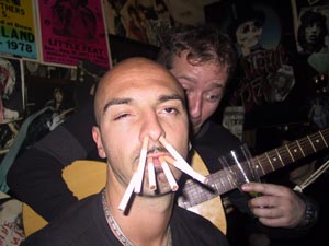 I gestori sono due svaporati in tenuta figli dei fiori e i prezzi come sempre in queste situazioni esagerati. Pagamento alla consegna di ogni bicchiere. Max e Ninja contrariati dall'ennesima conferma che lo stile flower power e freak viaggi sempre di pari passo con l'attaccamento al portafoglio decidono con un atto di giustizia sommaria di impadronirsi di soppiatto di una bottiglia di tequila con una invitante etichetta forma di teschio. La svuotano distribuendo bicchieri di nascosto all'ombra del bancone mentre regalano sorrisi ebeti ai tenutari che sfoggiano dalla loro un'espressione del tipo "ciao fratello vengo dalla ionosfera e lì tutto è pace e armonia". L'effetto sakè e tequila si fa presto sentire ed esasperato dall'ennesimo pattern rock blues Max stacca dal muro una sei corde ed incomincia a suonarla con un bicchiere di metallo. Il Ninja lo aizza seguendolo con la macchina fotografica in un crescendo vorticoso che sta per raggiungere il culmine con un "vai spaccala sul bancone come Hendrix a Monterrey, vediamo se obbiettano".