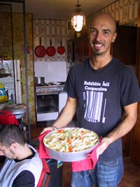 Vicio strappa nettamente la palma di chef della band. Con il battutino di scalogno e tonno, con le paste ai broccoli e acciughine, con paste alla pescatrice, pollo ai peperoni e altro ci ha tenuto a debita distanza dai temibili quattro salti - bastoncini - sofficini e altri grandi classici della cucina di Ninja e Boosta ("oh, ma voi ancora non avete provato i quattro salti in padella giapponesi???").