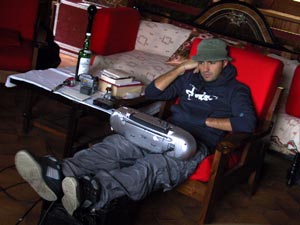 Finale di giornata, dopo una cena preparata da Vicio e consumata con sottofondo di Bjork e Johnny Cash, il solito litigio davanti al lettore dvd. Nessuno ha voglia di raggiungere il paese più vicino per praticare un classico noleggio e quindi si tira fuori quello che c'è. Max, con un cofanetto di Derek Jarman viene subito estromesso dai reazionari Boosta e Ninja che rilanciano con Playstation fifa 2000. Qualcuno propone quindi "L'esorcista" versione integrale ma qualcun altro obbietta fifa, non 2000, fifa - paura. Quindi alla fine ci si accontenta di una selezione di puntate del telefilm (anni 60) "Il prigioniero".