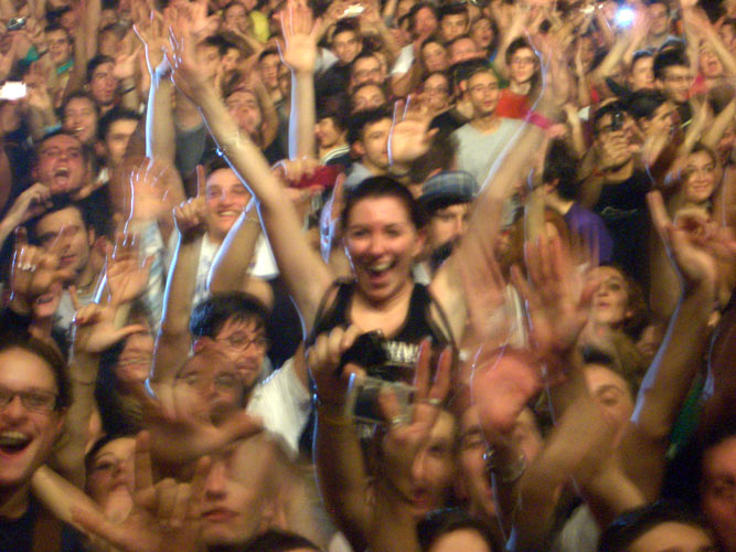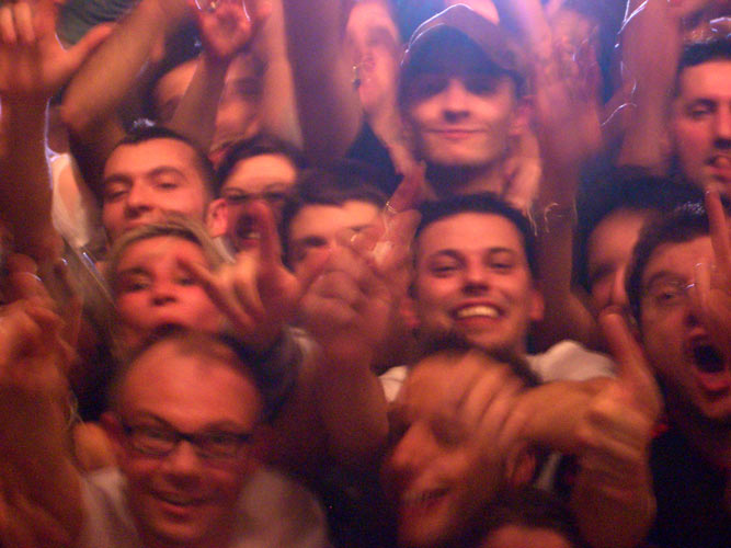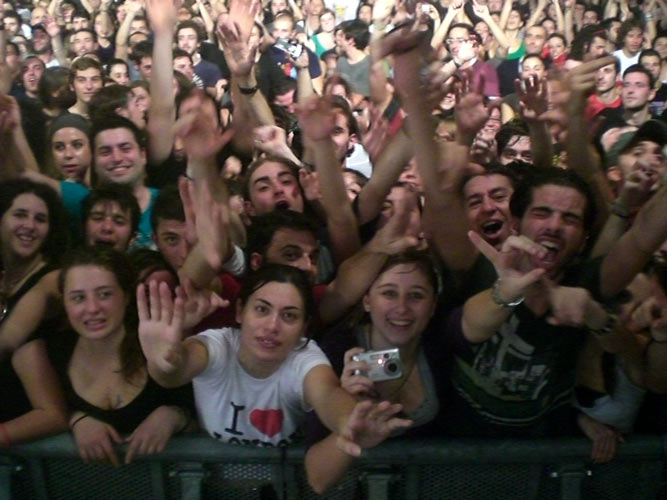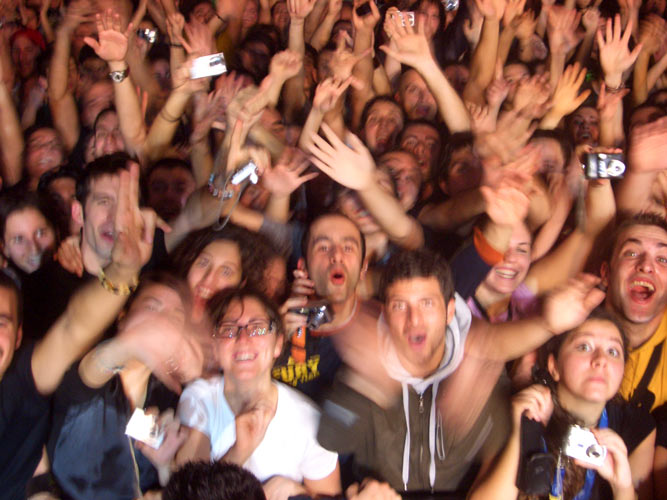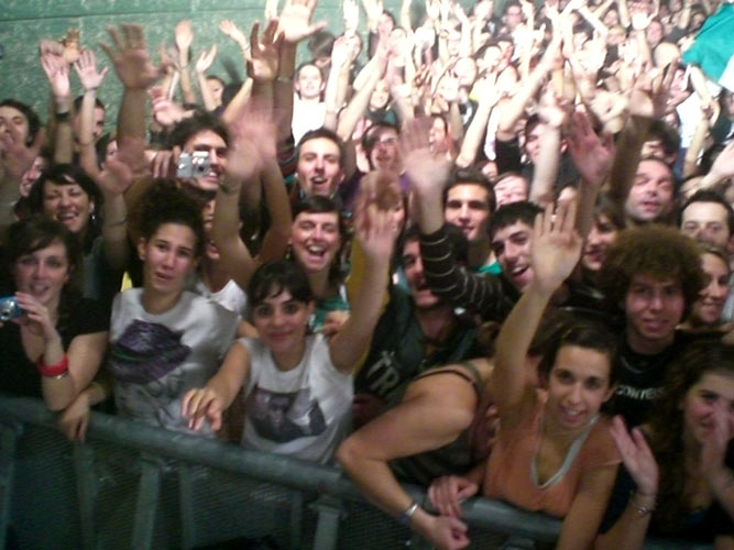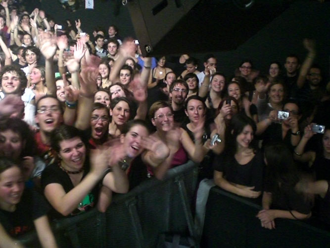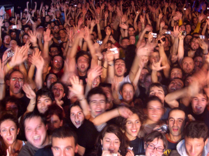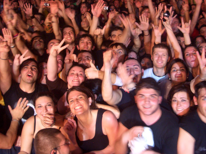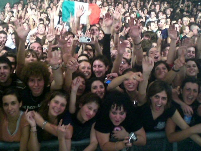 Ma oggi la faccenda è complicata. Il locale è pieno ben oltre la capienza stabilita e la gente, appena partono le prime note del concerto, salta e spinge all’impazzata, tanto da far cedere le transenne davanti. La storia –vedi il festival di Roskilde di una decina di anni fa- ci ha insegnato che questi problemi non si possono trascurare, perché si rischiano gravi incidenti. Fermiamo tutto e riprendiamo solo quando la situazione è stata messa a posto. Però mi chiedo una cosa. Uomini della security? Quando una ragazza/o chiede in lacrime di essere portata via perché si sente male, fatela uscire dalle transenne e portatela via, porca puttana!