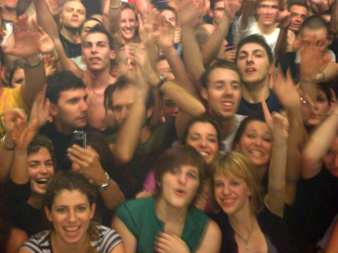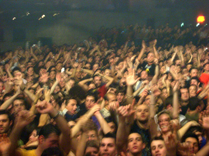 Dopo la sera del 24 riceviamo l'invito a passare al De Sade (?). Trolley al seguito, esco dall'Alcatraz, raccolgo una quindicia di irriducibili terrestri, punto dritto al minaccioso esponente della security e al grido di "siamo i subsonica" faccio passare tutti quanti. Ambiente molto milanese ma facce quasi tutte torinesi al punto che sembra di stare in Piazza Vittorio. Si tratta infatti di un evento organizzato da un'appendice dei Linea77 che ha coinvolto oltre ai Casinò Royale anche i cari amici Bunna e Madaski. Uno o due (cento) drink poi via in albergo.