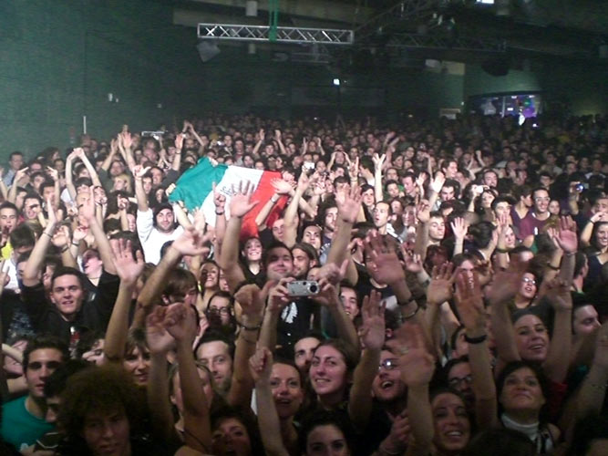 La situazione del Viper è la fotocopia della sera prima, con ogni angolo stipato all’inverosimile. C’è da sudarsi l’anima, ma anche oggi diamo sfoggio della condizione migliore e, con meno raffreddore in corpo, me la godo di più. Mah, non vorrei peccare di immodestia, ma mi sembra che così bene non abbiamo mai suonato in questi anni e, come mi fa giustamente notare Pelù a fine concerto, sia con tutto il “baraccone” dei palazzetti al seguito, sia senza, abbiamo raggiunto una personalità unica. Per migliorare come singolo musicista, suonare tanto assieme agli altri è persino preferibile allo studiare scale, arpeggi e tecnicismi vari per ore e ore. Parola di Vicio. ;)