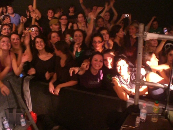 Dopo il concerto sale in consolle Max e la sua scorta di riempi-pista indie, mentre il resto della truppa vaga per il locale. Io mi soffermo qualche istante a scambiare due parole con Petra Magoni, raffinata cantante di estrazione jazz, che ultimamente sta mietendo successi in giro per il mondo in duo con Ferruccio Spinetti, contrabbassista degli Avion Travel. È qui, oltre che per curiosità, per via della “cuginanza” di primo grado con Silvia, nostra collaboratrice.