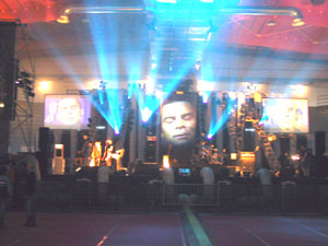 Il palco illuminato è davvero bello, Mamo Pozzoli ha superato se stesso, sia con la scenografia che con la scelta delle luci. Vedere sugli schermi il fermo immagine in primo piano di un Volontè imbrillantinato e incravattato tra l'alluminio delle americane storte e le luci motorizzate che girano per le ultime prove è piuttosto emozionante. E' qualcosa di italiano e di alieno allo stesso tempo.