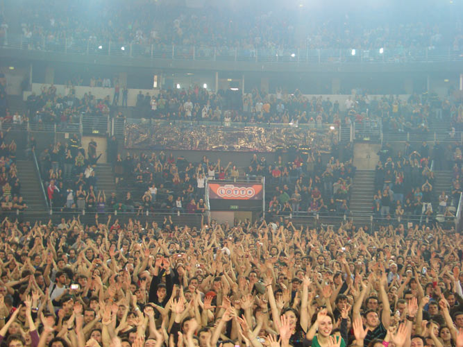 L’acustica del Palalottomatica è come sempre l’antro di Polifemo, ma a questo giro alcuni nostri accorgimenti la miglioreranno rispetto alla tappa del tour precedente.