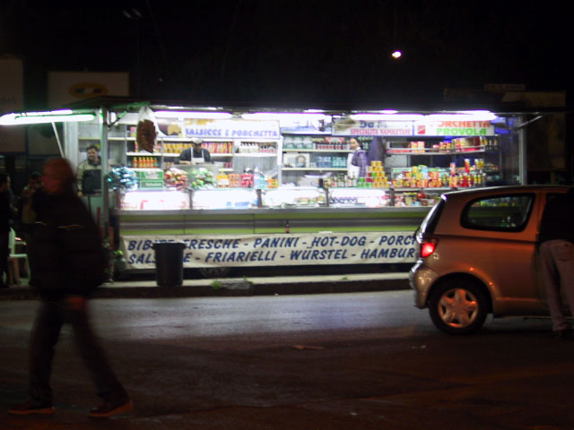 Albergo, cena e furgone destinazione palco. Lungo il tragitto lasciamo scorrere una Napoli notturna sulle note di Orpheus di David Sylvian. Serve a rilassare l'attesa per una data importante. A Napoli la musica è di casa, il posto è enorme ma i concerti negli ultimi anni qui sono decisamente in calo. Dietro i vetri oscurati contiamo con grande soddisfazione il numero (sono ben tre) dei camioncini ambulanti con hot - dog, pizza, salsiccia, etc. Li documentiamo.