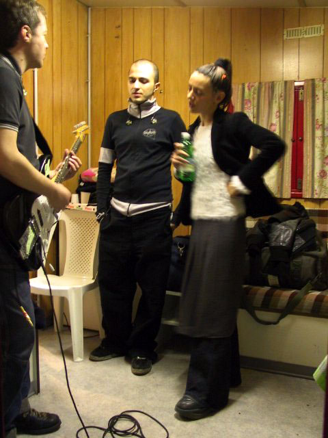 Nei camerini vengono a trovarci i 99 posse. Con Mega per scherzo si ipotizza un intervento sul palco e un luccichio nei suoi occhi indica inequivocabilmente che tenteremo un "senza rete". Con la chitarra proviamo a capire come e dove ma decidiamo che sì.