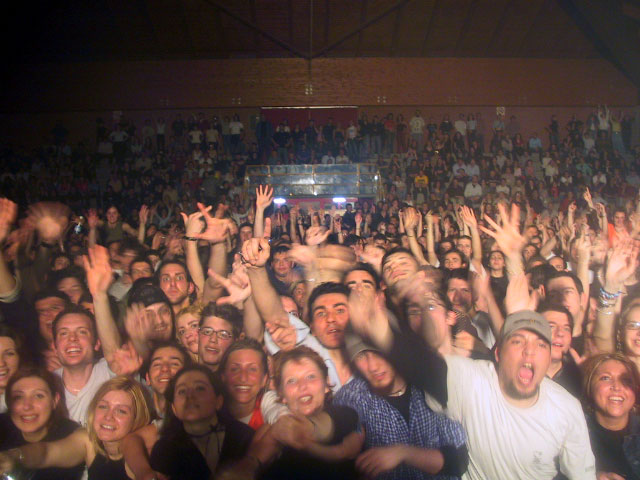 Ora, è vero che Cipo non èproprio un vichingo per dimensioni ma questo scatto rende bene l'idea sul comeci siamo voluti rapportare tecnicamente all'evento. Senza gravare sul prezzo delbiglietto abbiamo voluto dimostrare che si può presentare uno spettacoloall'altezza di spazi come questo. È difficile da spiegare, ma l'ordine dimensionale è davvero grande e sembra di trovarsi nel bel mezzo dell'allestimento di un concerto di qualche famosissima band Y che andavamo a vedere da ragazzini.... Questa sensazione è ampliata ulteriormente dalla presenza fuori dal palazzetto di una decina di paninoteche ambulanti e di cinque o sei banchetti di magliette tarocco. Girano addirittura voci di bagarini che bussano ai finestrini delle auto di un'ormai chilometrica coda in Viale Certosa. Il numero dei chilometri aumenta ad ogni passaggio del racconto. Siamo veramente allibiti. Ma a poco a poco iniziamo a prendere confidenza delle situa: basta vedere la faccia illuminata del Ninja quando batte il primo colpo di cassa del sound-check per capire che l'impianto ci darà non poche soddisfazioni.Volume da spettinare un bue muschiato!