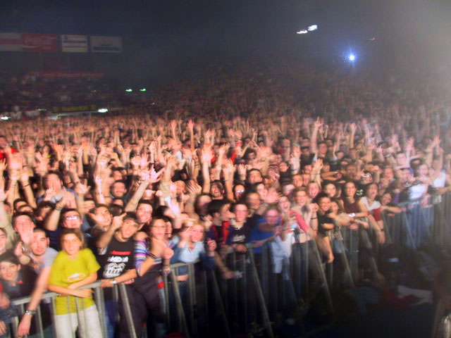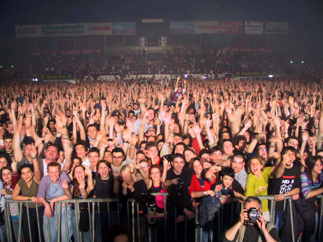 Et voilà: tocca ai Subsonica. L'uscita sul palco ci lascia tutti piuttosto "inchiodati" - beh... dare un'occhiata alle foto del pubblico per capire - ma poco per volta iniziamo a ingranare. Peccato che le pirotecniche tastiere del Boosta sembrino stregate e il loro suono vada e venga per tutta la durata del concerto. Anche la chitarra del Presidente fa le bizze in continuazione. Morale della favola: a fine serata i nostri amici, discografici e personaggi vari fanno la fila per farci i complimenti per l'incredibile successo della serata, ma noi non nascondiamo un velo di insoddisfazione per tutti i problemi tecnici. Vabbè. Il concerto non è da annoverare tra i miglioridel tour ma non possiamo dire di esserci risparmiati. Così come non si èassolutamente risparmiato il pubblico, davvero incredibile. Una sicuramenteperformance basata più sull'energia che sui dettagli.