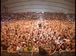 Ceniamo presto e mangiamo poco. La tensione incomincia a salire. Si aprono i cancelli del palazzetto. C’erano ragazzi in attesa fuori dalle porte, fin da mezzogiorno. Li intratterrà il disco dei Sikitikis, una costante che accompagnerà tutto il tour. Chi corsa per i corridoi, chi streching, chi fialette di ginseng……è ora di salire.