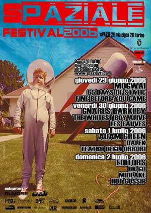 E' di questo che si occupa sPAZIALE festival in sPAZIO211 a Torino, festival dedicato alla produzione, diffusione e valorizzazione dell'innovazione artistica ed in particolare a quella musicale. Dal 29 Giugno al 2 Luglio 2006 sPAZIALE festeggia la quarta edizione imponendosi come oasi alternativa a libera vocazione artistica: a Torino transiterà la produzione Rock indipendente preservata dal mainstream imperante insieme alla produzione Rock di grido tutelata dall’indipendenza di moda, in una delle pochissime lande che non si abbandona alla corrente ma tenta di dare ossigeno all'asfissia artistica-culturale.