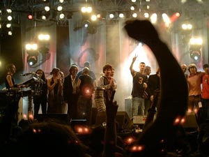 Arriviamo a Nizza con un attimo di ritardo, giusto in tempo per vedere terminare i Gatto Ciliegia, seguire l’esibizione dei Mice-vice, i redivivi Fratelli di Soledad seguiti da un emozionante set dei Yuppie Flu. Il quintetto anconetano reduce da applaudite sortite londinesi è la grossa sorpresa della serata. Dopo di loro i più conosciuti Punkreas coinvolgeranno come sempre, Cristina Donà emozionerà tutti con la sua incredibile voce e i Marlene Kuntz si presenteranno un set di grandissima compattezza, dimostrando quanto siano costantemente in grado di superarsi. Non siamo certamente i migliori giudici di noi stessi, ma ci troviamo a nostro agio nel suonare una scaletta calibrata secondo un criterio di sintonia con gli artisti che hanno caratterizzato questa emozionante giornata. Guardiamo la gente reagire con la spettacolare energia di sempre. Guardiamo anche Manuel Agnelli, assolutamente in forma, destreggiarsi con grande maestria nel ruolo di maestro di cerimonie, coppola in testa e camicia tardo romantica d'ordinanza.
