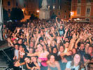 Il cielo si rannuvola preoccupantemente offrendo anche un bello spettacolo visto dai balconi della piazza ma costringendoci contemporaneamente ad iniziare puntuali alle nove e mezza. Anche perché il palco non ha nessuna copertura e la pioggia su strumenti ed apparecchiature non è il massimo della vita. Samuel con piglio da maresciallo dell'aeronautica fiutando l'aria e scrutando i nuvoloni afferma che non ci sarà pioggia ma il rischio c'è e quindi anche se la gente sta ancora arrivando partiamo con l'intro. Il concerto tecnicamente viene definito dal fonico Cipo come uno dei migliori di questi giorni, anche se non riusciamo ancora a toglierci alcuni fastidi tecnici sempre legati alle cuffie di Boosta alle chitarre di Max e agli ascolti di Samuel. Questa cosa penalizza molto il divertimento sul palco e forse opacizza il coinvolgimento generale. Anche se il pubblico mostrerà di apprezzare davvero molto. Finale di serata caldissimo, ci informano che è ancora in pista il "Baraonda" di Cinquale di Massa. E infatti lì ci rechiamo dopo aver sparso la voce in piazza. Al Baraonda Samuel consuma una vendetta lasciata a macerare per anni. Era il novantotto e Camilla (tecnico luci) ci stava seguendo da pochissimo, forse due o tre concerti. Per esternare il suo affetto crescente nei confronti della band decise proprio al Baraonda, di non trovare modo migliore che riempirsi la bocca con un boccale di birra per venire a spruzzarcela a turno in piena faccia. Tutti grondanti, tranne Max verso il quale la giovine provava una misteriosa forma di soggezione, decidemmo di annoverare tra le bravate da tour l'episodio. Fino ad oggi. E infatti Camilla grondante al bancone del bar dello stesso locale non osa proferire alcunché, sgocciolando in silenzio. Il resto è un delirio sempre crescente che culmina con l'essere sgridati da un massiccio buttafuori a causa del pogo scatenato su un pezzo dei Ramones. Max raggiante afferma "cazzo pensavo non mi sarebbe mai più successo nella vita d'essere sgridato come un pischello". Quindi vietato il pogo ci buttiamo sulla caipiroska all'anguria. In realtà a pensarci bene della band gli unici nottambuli sono Samuel e Max mentre il resto del gruppo è composto da Cipo, Ivan, Raffa, Sem, Camilla, Germano il nuovo aiutante di Ivan e Roby. Samuel ad un certo punto rischia l'accoltellamento dopo essere salito su una Harley Davidson parcheggiata vicino all'ingresso del locale ed essere stato beccato in flagrante dall'incazzosissimo proprietario.